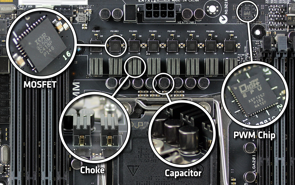 如果把CPU比作一个嗷嗷待哺的婴儿(而且是个大胃王),那电源(PSU)就是做饭的厨房,供电控制芯片(PWM)是喂饭的手,而主板供电模组(VRM)就是负责喂饭的勺子。