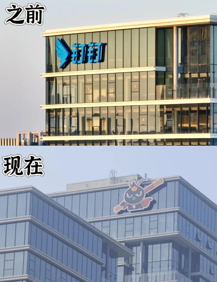 现在网上钉钉换logo前后比较的一张图都开始传疯了。