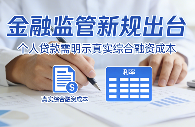 金融监管总局与中国人民银行联合发布重磅新规,剑指个人贷款领域的息费乱象,明确要求金融机构在办理个人贷款业务时,必须明示贷款综合融资成本,让借款人清晰了解所有费用构成,不再被表面的低利率所误导。该新规自2026年8月1日起正式施行。