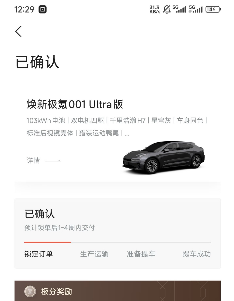 还好赶在25年末班车下手,购置税直接从车价里面减了,还能享受26年置换补贴,外加1天1000极分的等车积分,香麻了预计一