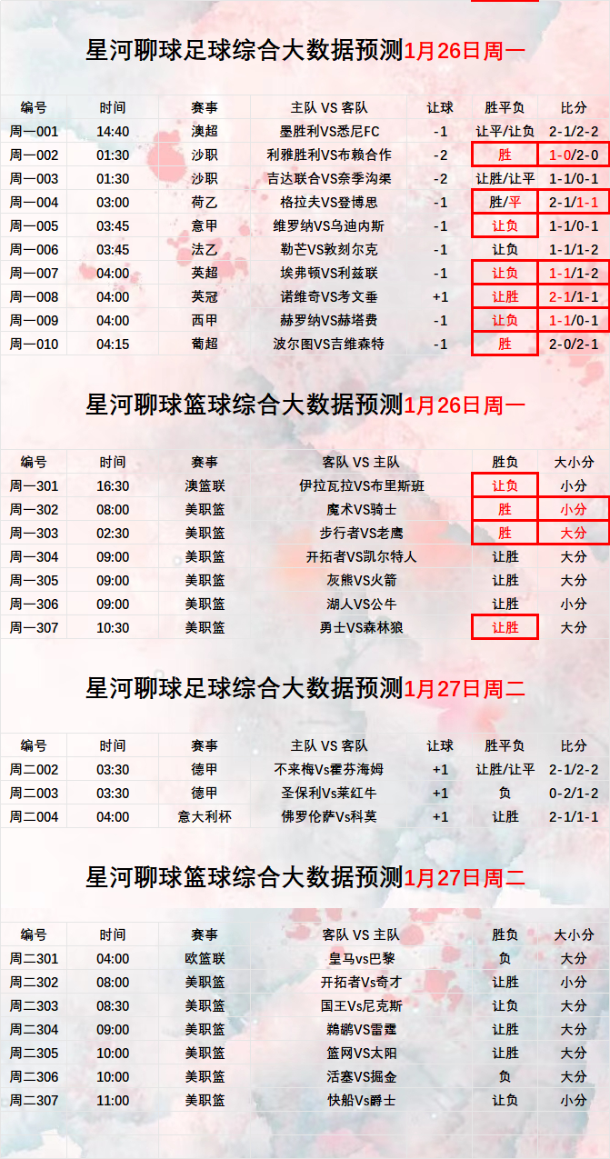 2026年1月27日 【星河聊球足球篮球扫盘】