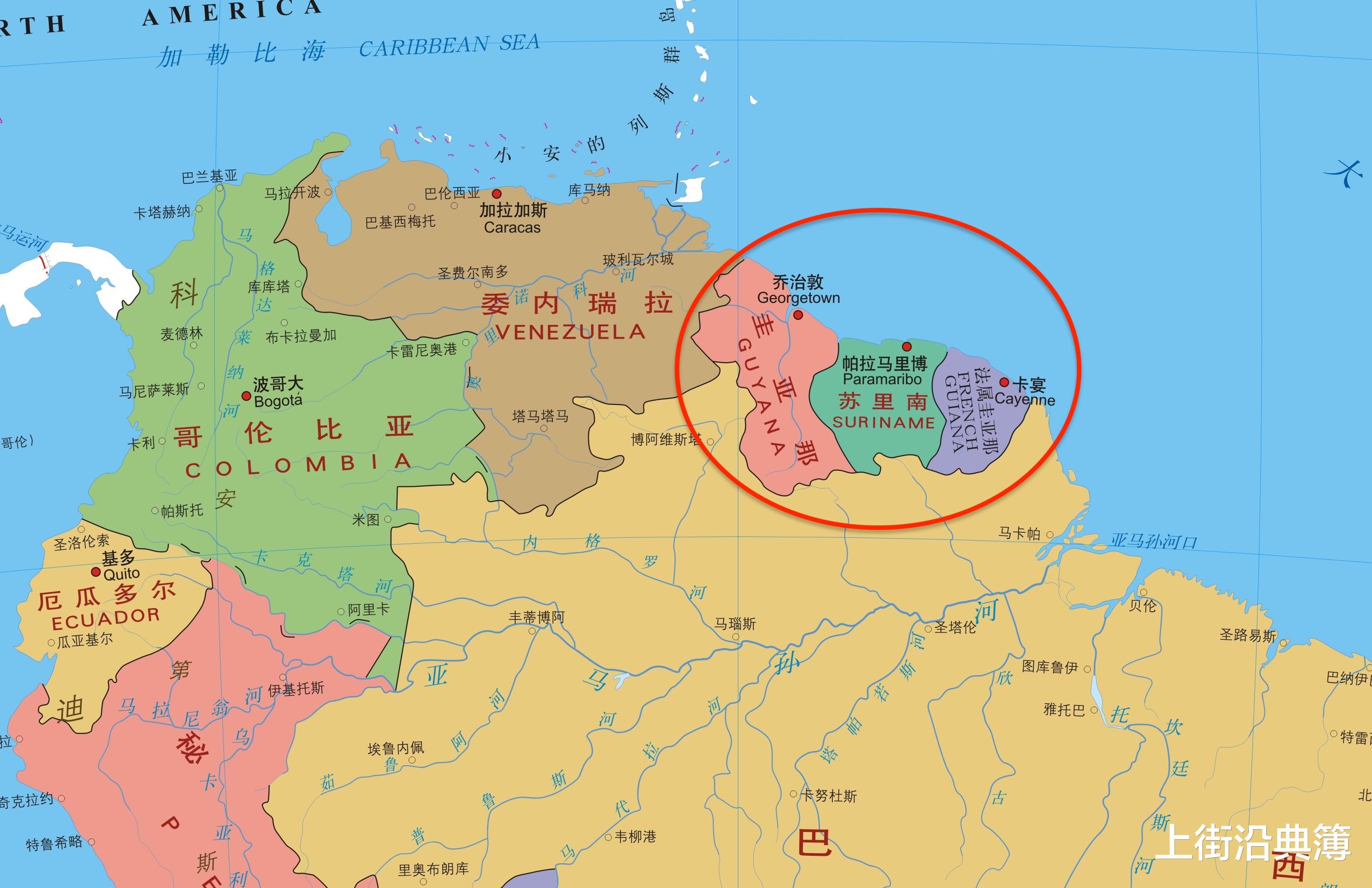 现实背景:朋友圈2015年,圭亚那近海发现超级油田,探明可采储量超过110亿桶,它是南美大陆上继委内瑞拉和巴西之后的第三大石油储量国。经济体量开始暴涨,财富来了,身份反而更清晰了。当委内瑞拉不断声索圭亚那埃塞奎博河以西的领土,圭亚那第一时间寻求的背书来自加勒比共同体和英联邦,不是南美国家联盟。