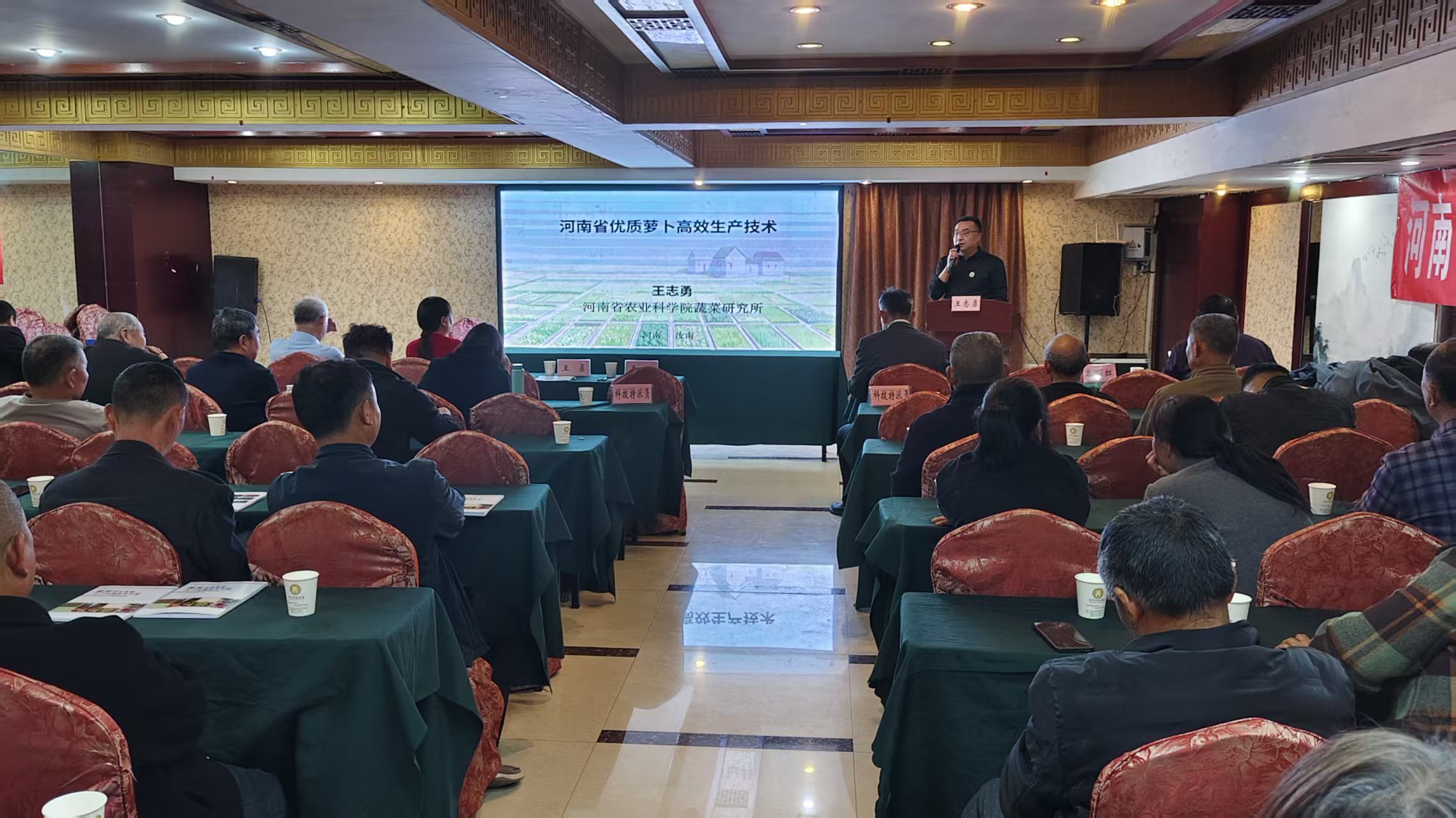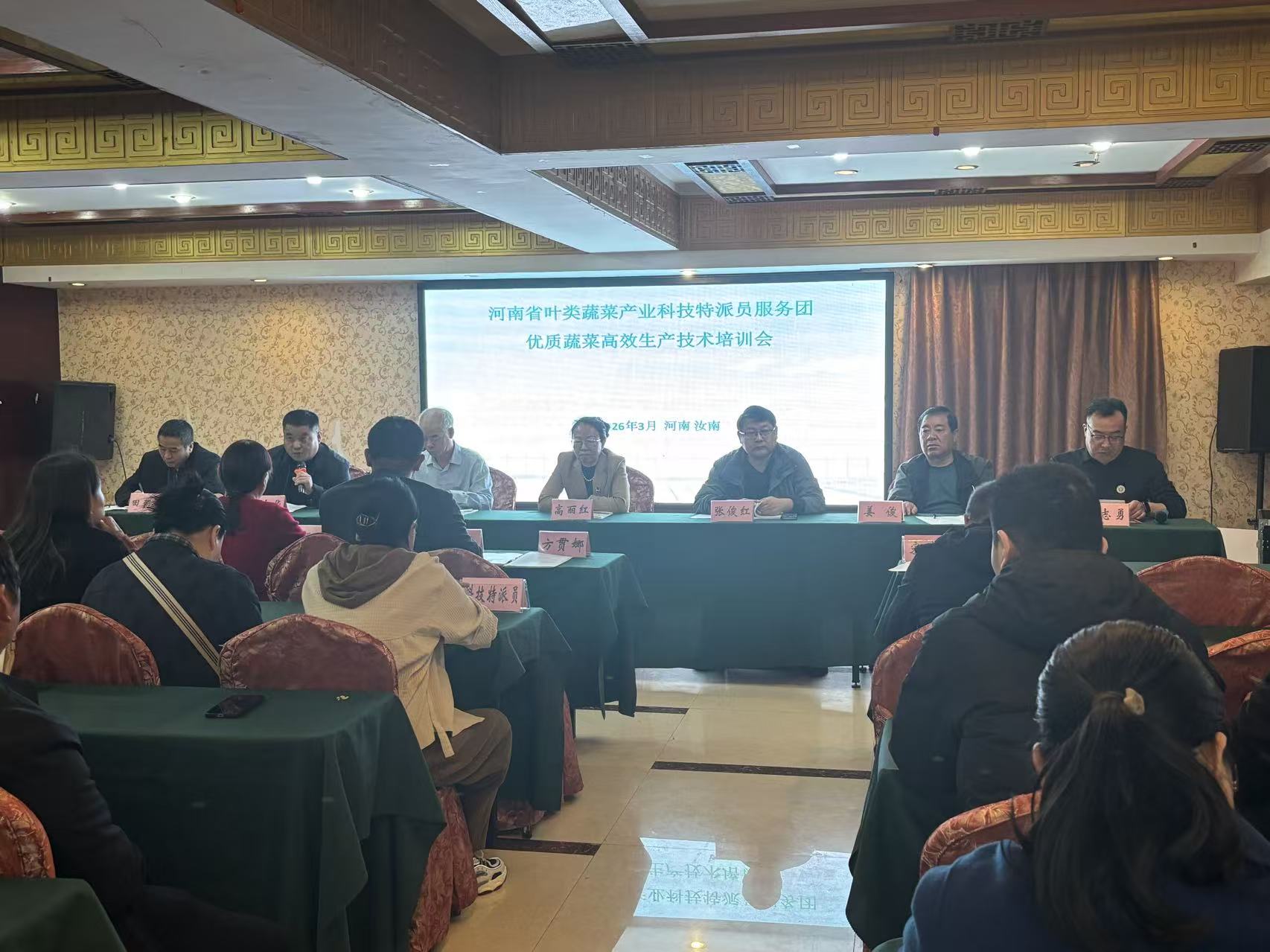 阳春三月,草长莺飞,春意盎然。3月27日,汝南县人民政府、河南省农业科学院蔬菜研究所联合举办汝南县优质蔬菜高效生产技术培训会。培训会由省农科院蔬菜研究所副研究员王志勇主持,中原学者、河南省叶类蔬菜产业科技特派员服务团团长、省农科院蔬菜研究所研究员张晓伟,汝南县政府办公室副主任王中华,省服务团专家12人,以及汝南县科技特派员、各蔬菜基地负责人和种植大户80余人参加了培训会。