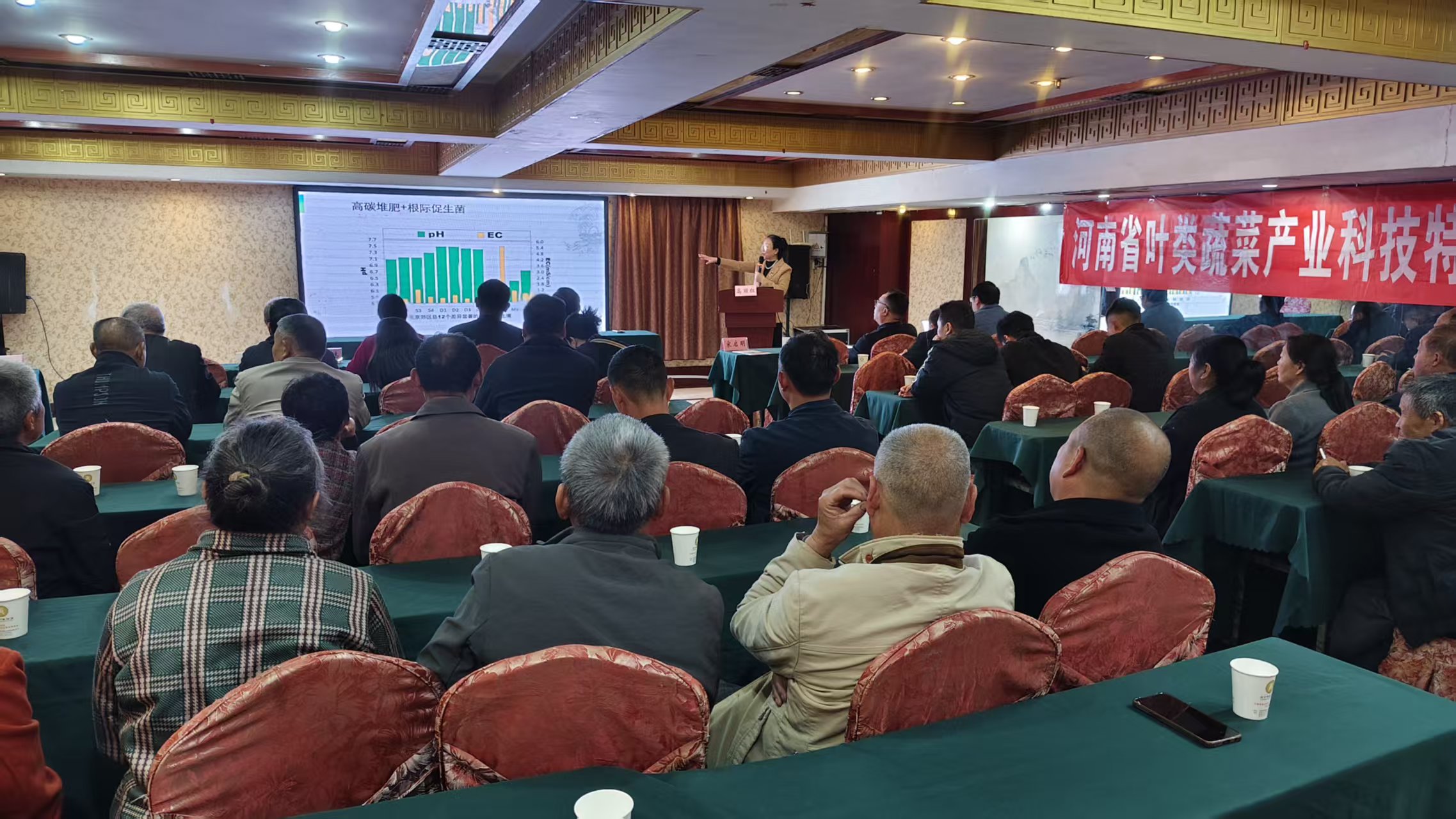 培训会上,中国农业大学教授高丽红讲解了《设施果菜轻简化栽培与菜田土壤质量提升技术》,华中农业大学教授张俊红讲解了《番茄新品种及高效栽培技术》,张晓伟研究员讲解了《甘蓝优质高效栽培技术》,王志勇副研究员讲解了《萝卜优质高效栽培技术》,培训内容直击当前设施蔬菜生产中的连作障碍、轻简栽培、整枝技术、栽培模式创新、品种创新等问题,很及时、很接地气。