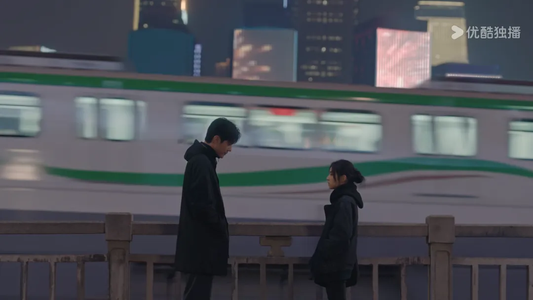 她和顾辰(张超 饰)交易的接头地点,不是随便的哪个地下车库,而是在一个远处能见城市灯火、近处却是城铁交错的地方。