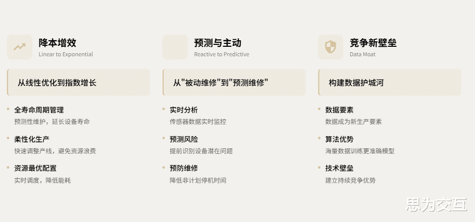 1. 降本增效:从线性优化到指数增长在传统的数字化时代,企业已经实现了ERP、MES等系统的对接,但随着市场竞争加剧,单纯的“看数据”已无法带来持续的竞争优势。数智化通过算法模型,可以在以下方面实现指数级的提升:
