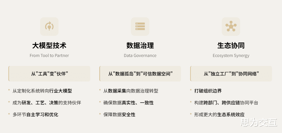 1. 大模型技术:从“工具”变“伙伴”过去的AI系统往往是为了解决特定的单一问题而搭建的“定制车”。而在数智化时代,企业正逐步构建行业大模型。这些模型不再是单一的工具,而是成为了研发设计、工艺优化、决策支持的“伙伴”,能够在多个环节进行自主学习和优化。