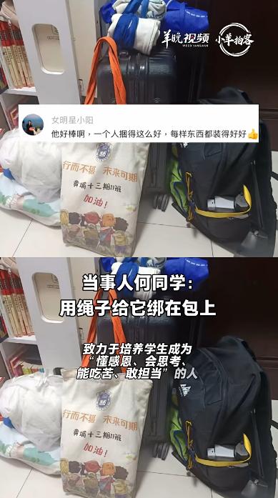 羊城晚报记者联系上这位同学,他姓何,是黄埔军校纪念中学初中二年级的住校生。他说,这些行李是在室友帮助下,花了20多分钟整理打包好的。