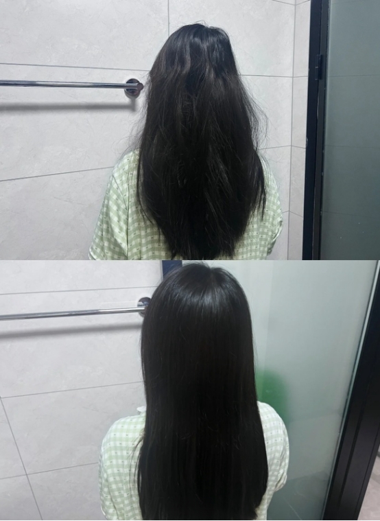如果是在干发时使用的话,只需取1到2泵精油,均匀涂抹在头发上即可,特别是发梢部分。这样它会在发丝表面形成一层保护膜,防止紫外线和高温损害头发,帮助锁住水分,保持光泽感。特别是对于干燥的发质来说,拾宓护发精油能够有效修复并防止毛躁,头发看起来更加柔顺、顺滑。
