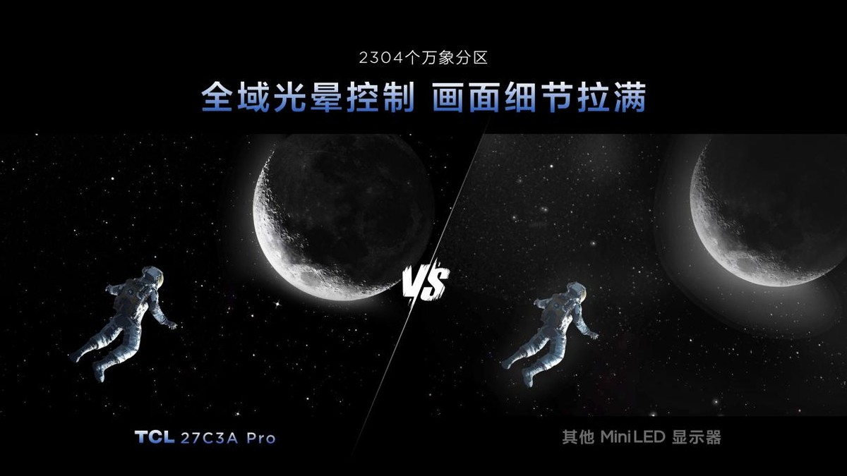 作为3A游戏的专属“细节悍将”,TCL C3A Pro的核心竞争力,正是TCL专业显示技术的直观体现,从根源上解决了3A玩家的核心痛点。针对3A大作暗场密集、细节易丢失的问题,这款显示器搭载了TCL独家的万象分区QD-Mini LED技术,拥有2304个万象分区,实现“一区顶多区”的超精细化控光,全域光晕控制效果碾压同级产品。