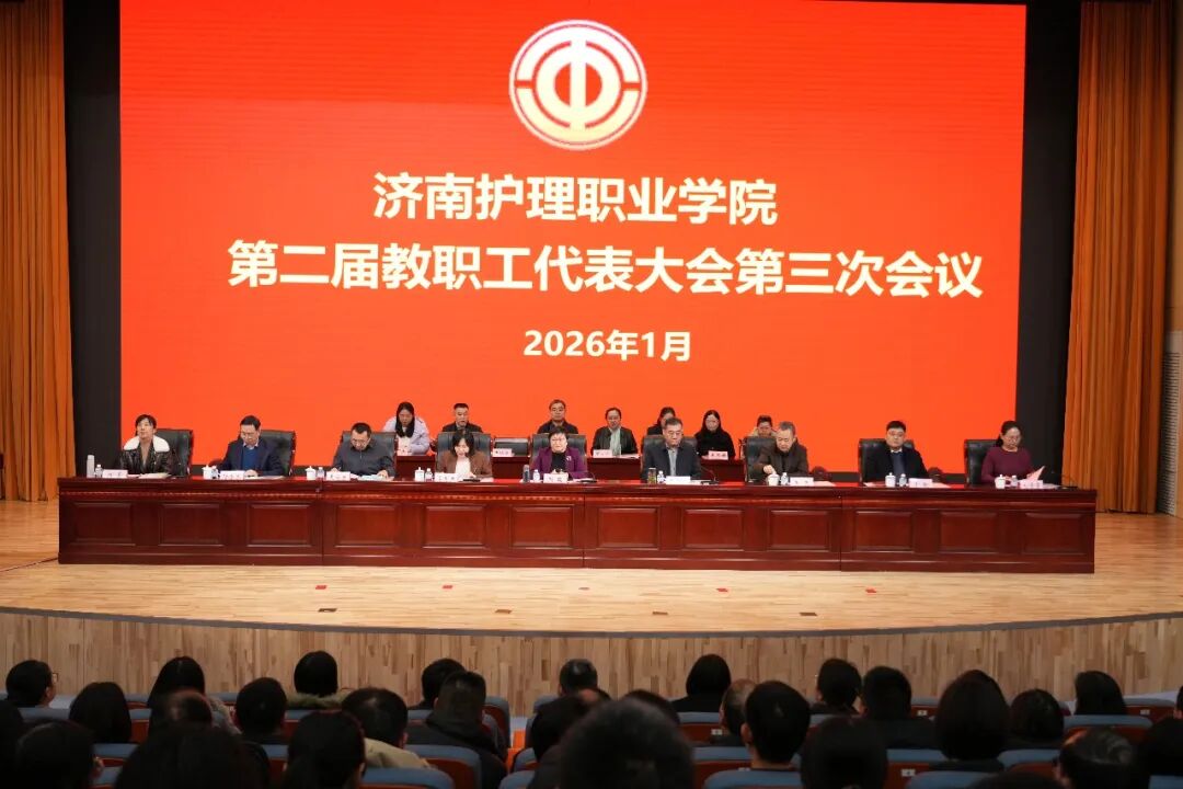 大会严格按照议程有序进行,全体代表认真审议、逐项表决,圆满完成各项预定任务。会议依次审议并表决通过《济南护理职业学院2025年工作报告暨2026年工作要点》《济南护理职业学院财务工作报告》《济南护理职业学院提案工作报告》《济南护理职业学院专业技术岗位评聘实施方案》《关于制定济南护理职业学院教育事业“十五五”发展规划的建议》等5项重要文件;同时,会议审阅听取《济南护理职业学院“十四五”教育事业发展规划完成情况报告》《济南护理职业学院三年行动计划执行情况汇报》,全面复盘发展成效、研判短板不足,为后续工作精准发力提供坚实依据。