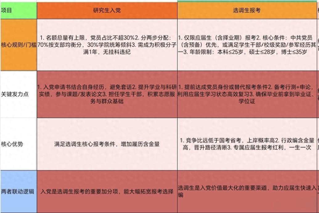 研究生入党&选调生报考核心要点对照表