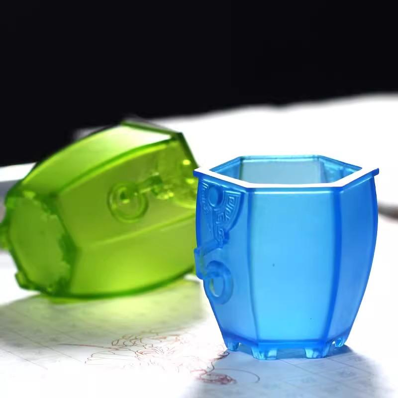作为文房四宝之外的重要用具,笔洗是文人墨客创作时不可或缺的存在。它形制乖巧、种类繁多、雅致精美,在洗笔的实用功能之外,为书房增添了浓厚的文化艺术氛围。古法琉璃双耳六脚缸笔洗以其独特的琉璃材质,展现出流光溢彩、变幻瑰丽的美感。其色彩丰富多样,不同颜色相互交融、自然流动,似有生命一般;在光线折射下,呈现出梦幻般的光影效果,或明澈、或深邃 ,令人赏心悦目。