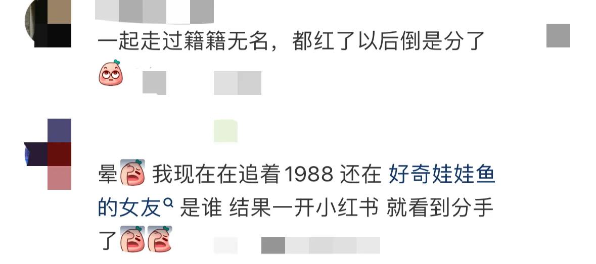 一起走过了籍籍无名的日子,都红了却分手了,虽然可惜,但是也祝福他们吧,希望各自安好。