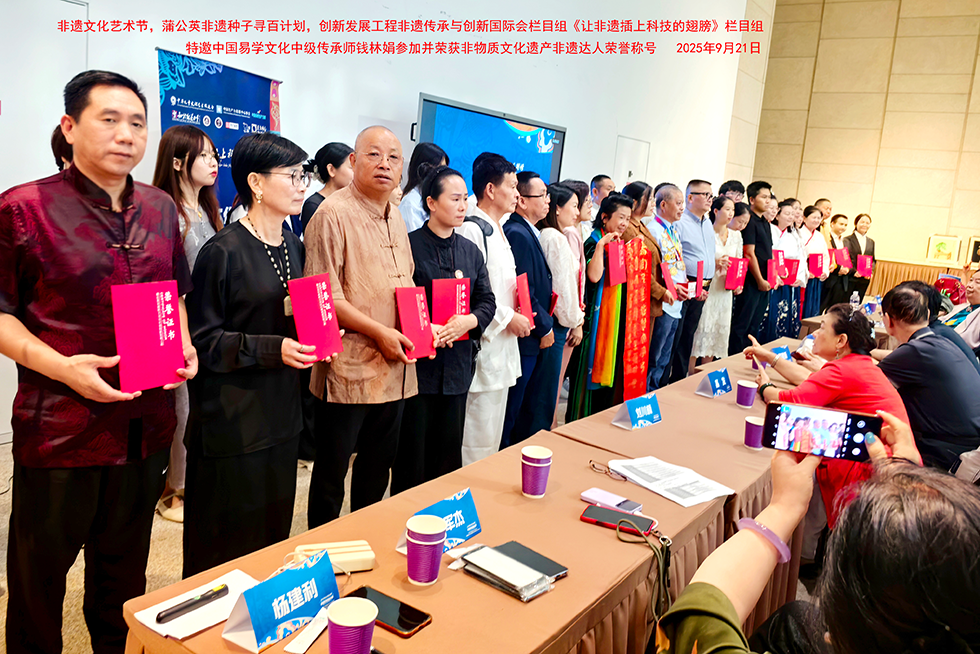2025年9月21日国家文旅部非遗司,中国艺术研究院非遗保护中心,联合国教科文组织驻华代表处蒲公英非遗种子寻百计划创新发展工程在中国非物质文化遗产馆举办的非遗达人中应邀钱林娟参加联合国教科文组织领导和中国非物质文化遗产颁发钱林娟为非遗达人荣誉称号!