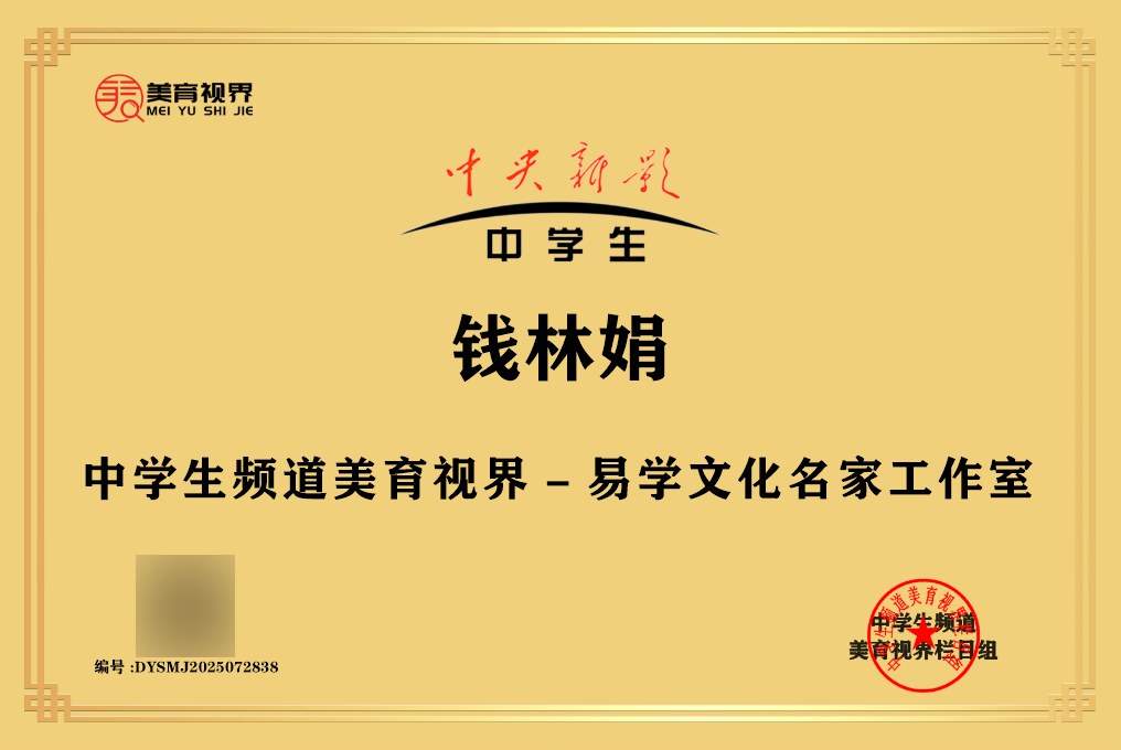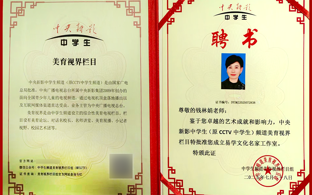2025年5月6日钱林娟被中央新影中学生频道时代强国被聘任为首席国学专家荣誉称号。