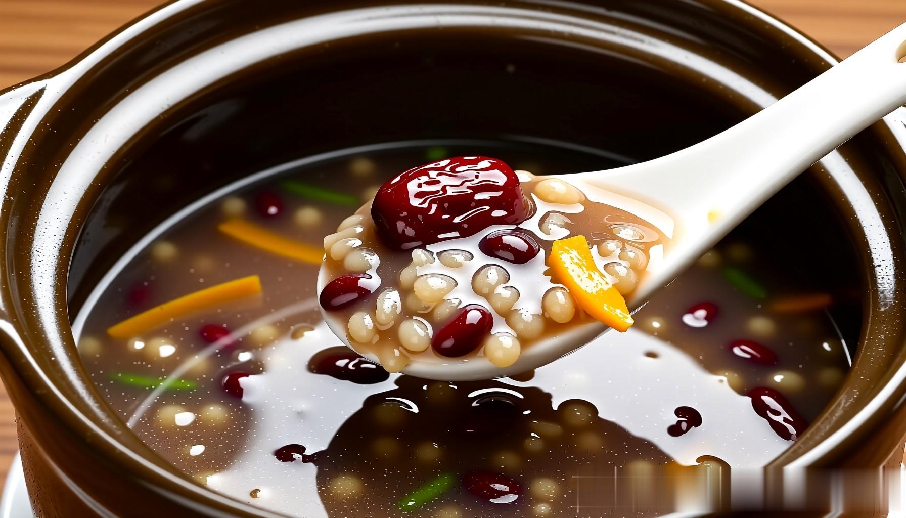 **配方做法**:取薏米30克、红扁豆30克,提前浸泡4小时。将二者放入砂锅,加水800毫升,大火煮沸后转小火慢炖40分钟,至豆米软烂。可依个人口味加入少量陈皮(理气健脾)或红枣(补中益气),但糖尿病患者建议不加糖。煮成浓稠粥状,晨起空腹或晚餐食用最佳。