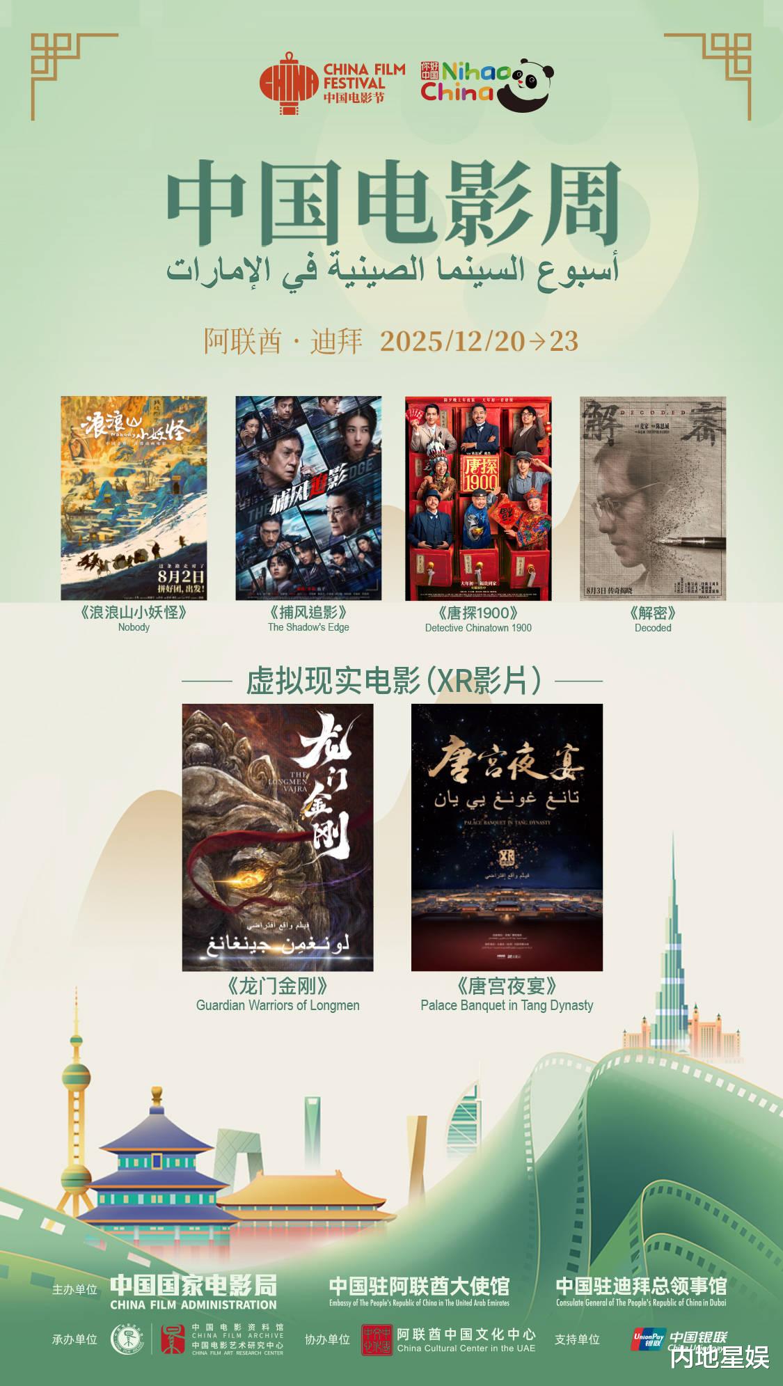 2025年12月20日,第七届“阿联酋中国电影周”在迪拜正式开幕,活动由中国国家电影局、中国驻阿联酋大使馆及中国驻迪拜总领事馆联合主办,中国电影资料馆承办,阿联酋中国文化中心协办,由中国银行特别支持。