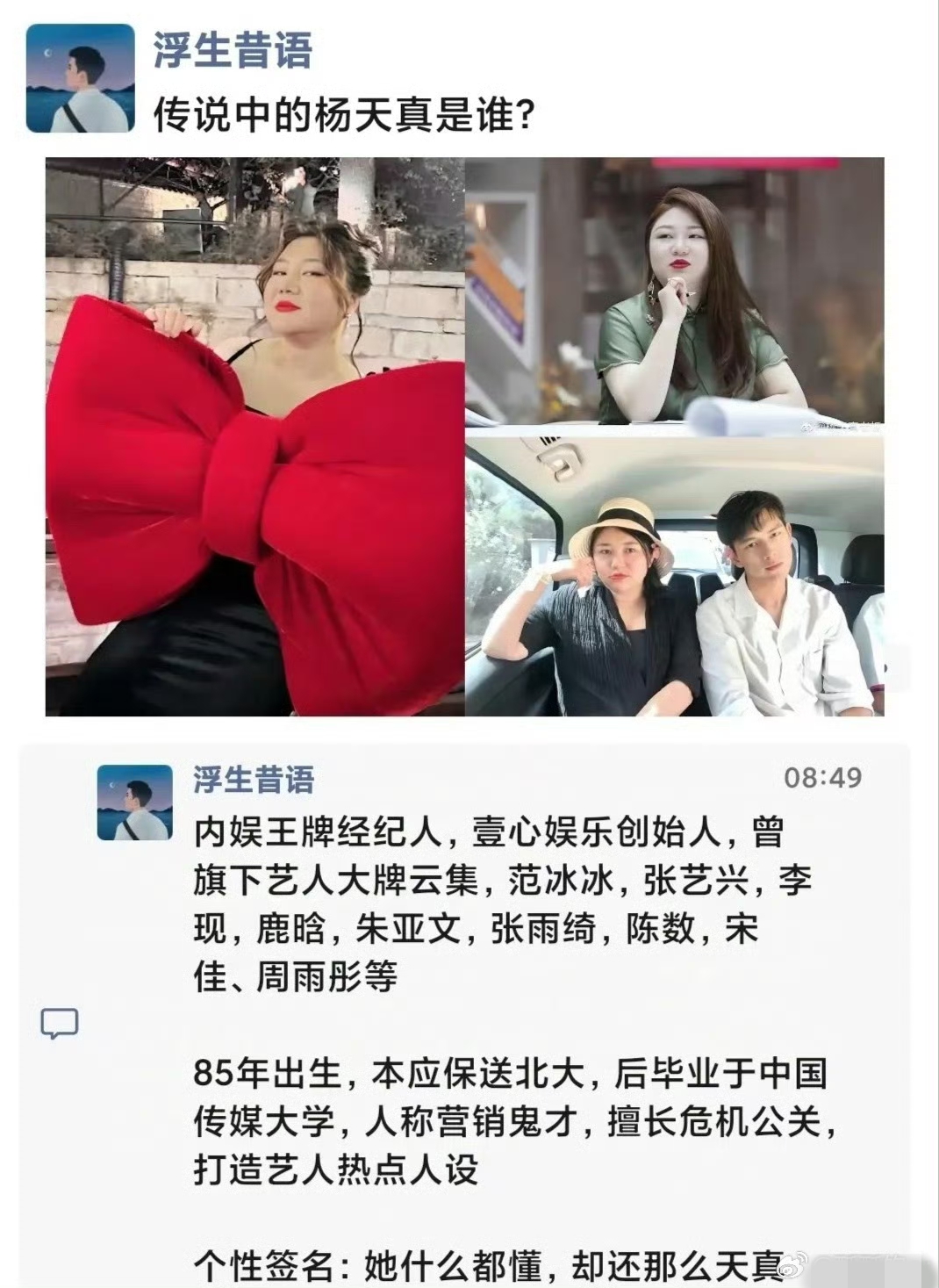 甚至有的在娱乐圈小透明,最后都被她操盘成了一线实力派男演员,比如白宇。不过杨天真也有翻车的,公关毕竟不是万能的。
