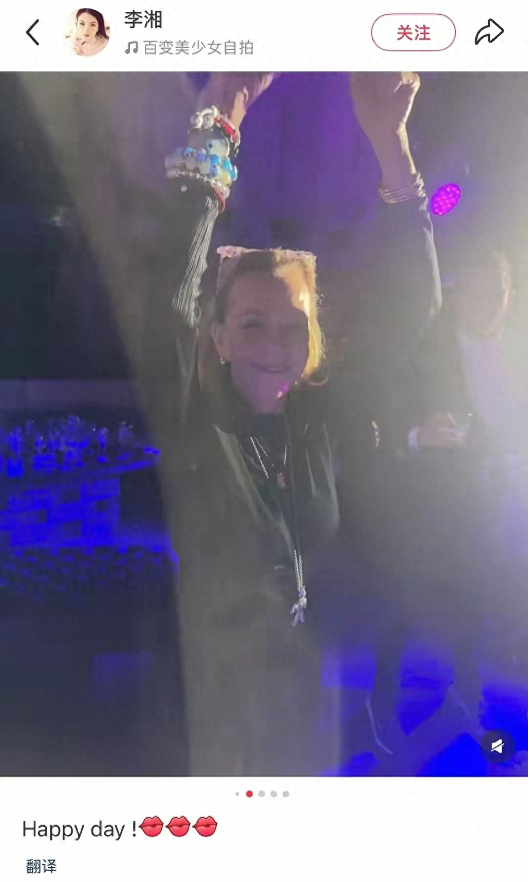 李湘还放了一张她亲吻卡罗琳的照片,殷勤到不顾旁人何想,卡罗琳被她亲到都红了脸。