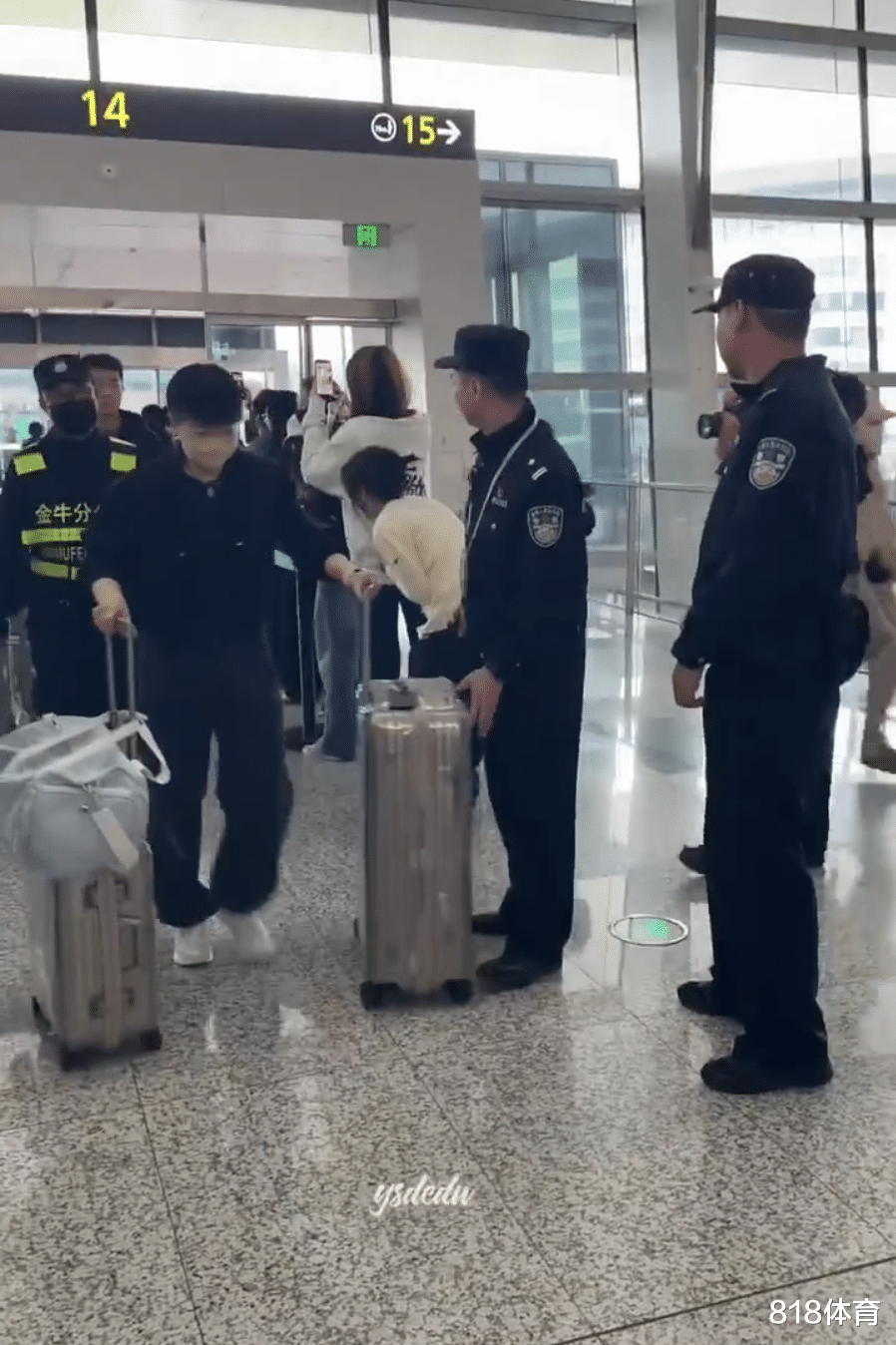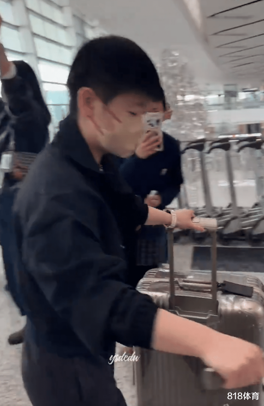 3月27日,国乒球队离开成都前往澳门准备参赛,孙颖莎拎着两个巨大的行李箱,走在队伍的后面。