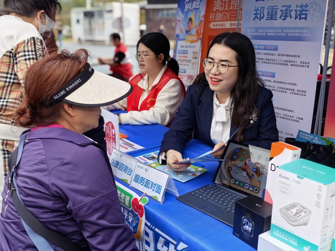 本次“法治集市”以趣味形式解锁宪法知识,打造沉浸式学法场景,吸引了众多市民驻足参与。北海移动公司精心布置的普法摊点前,专业人员耐心为市民解答通信服务中的法律疑问,涵盖套餐资费、个人信息保护、消费维权等热点问题,同时通过宣传手册、案例讲解等方式,向市民普及《个人信息保护法》《消费者权益保护法》等与通信消费密切相关的法律知识,引导市民依法维护自身通信权益。