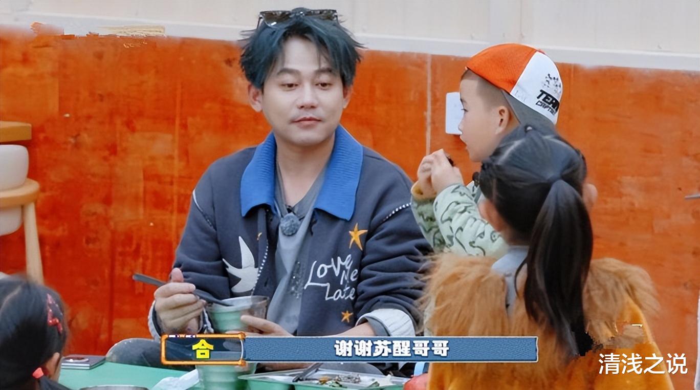 当小朋友去厚米乐园动物园看动物时,苏醒就有点摆烂了,把孩子交给自己的五个兄弟,自己则躺在椅子上休息。他说带孩子这种事情吧,该歇就歇,对吧,轮流来,万一用不上我呢,要懂得放手。当时还以为苏醒会懒到底,后面才知道他带孩子还是相当用心用力的。