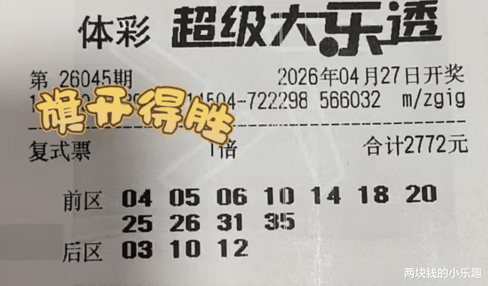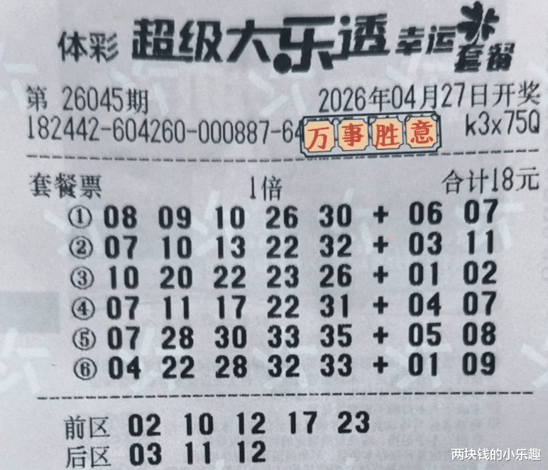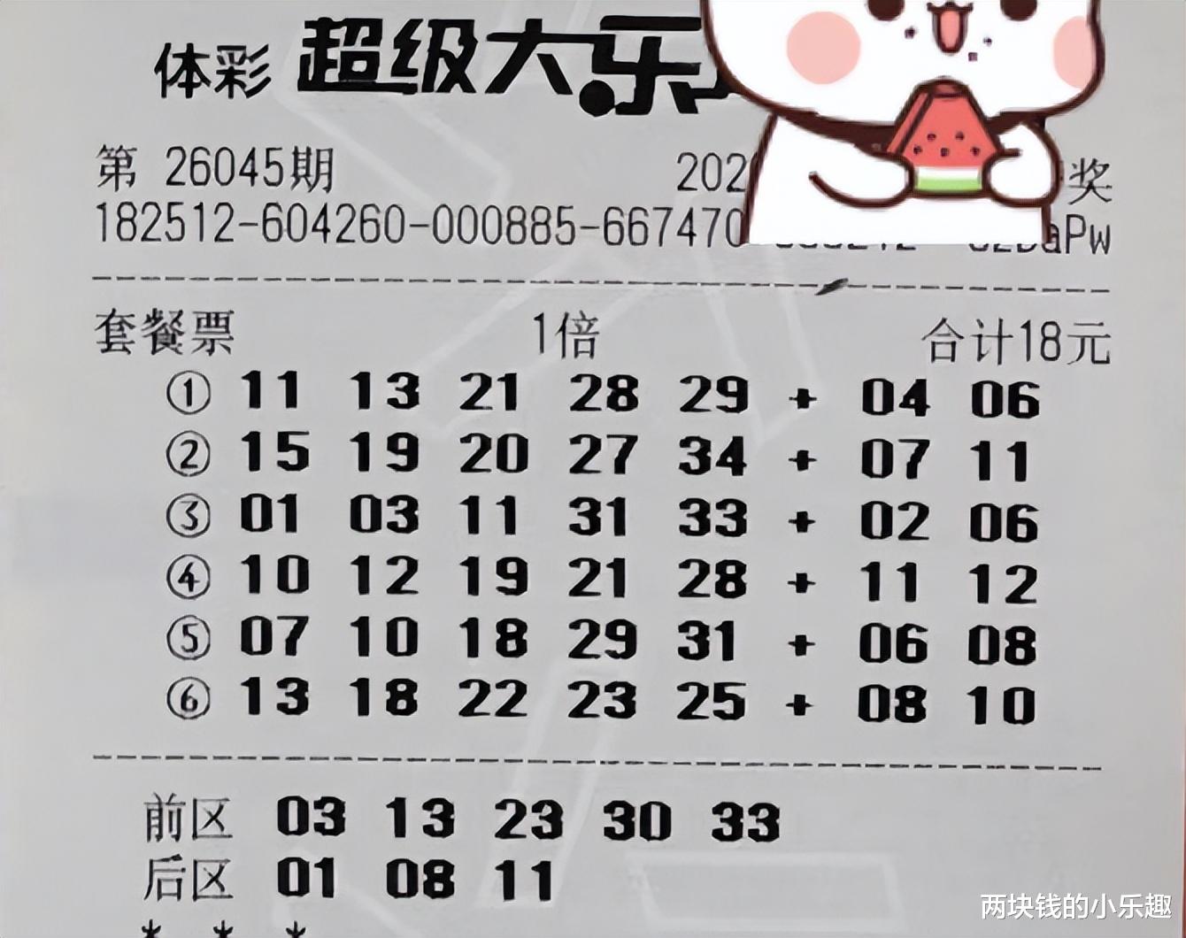 大家好,下面给大家带来了体彩大乐透第26045期的赏析,本期为大家收集了一波精彩的复式票赏析,其中一张消失许久的1.8万的大复式再次亮相领衔出场,拉开本期分享的序幕,另外有5544、4752和2772等主流复式的部分内容也已现身,下面请大家开始欣赏:
