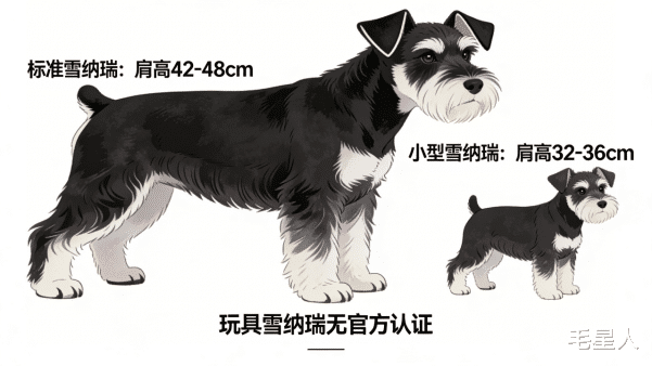 市场上常出现品种混淆,其与标准雪纳瑞、玩具雪纳瑞的核心区别如下: