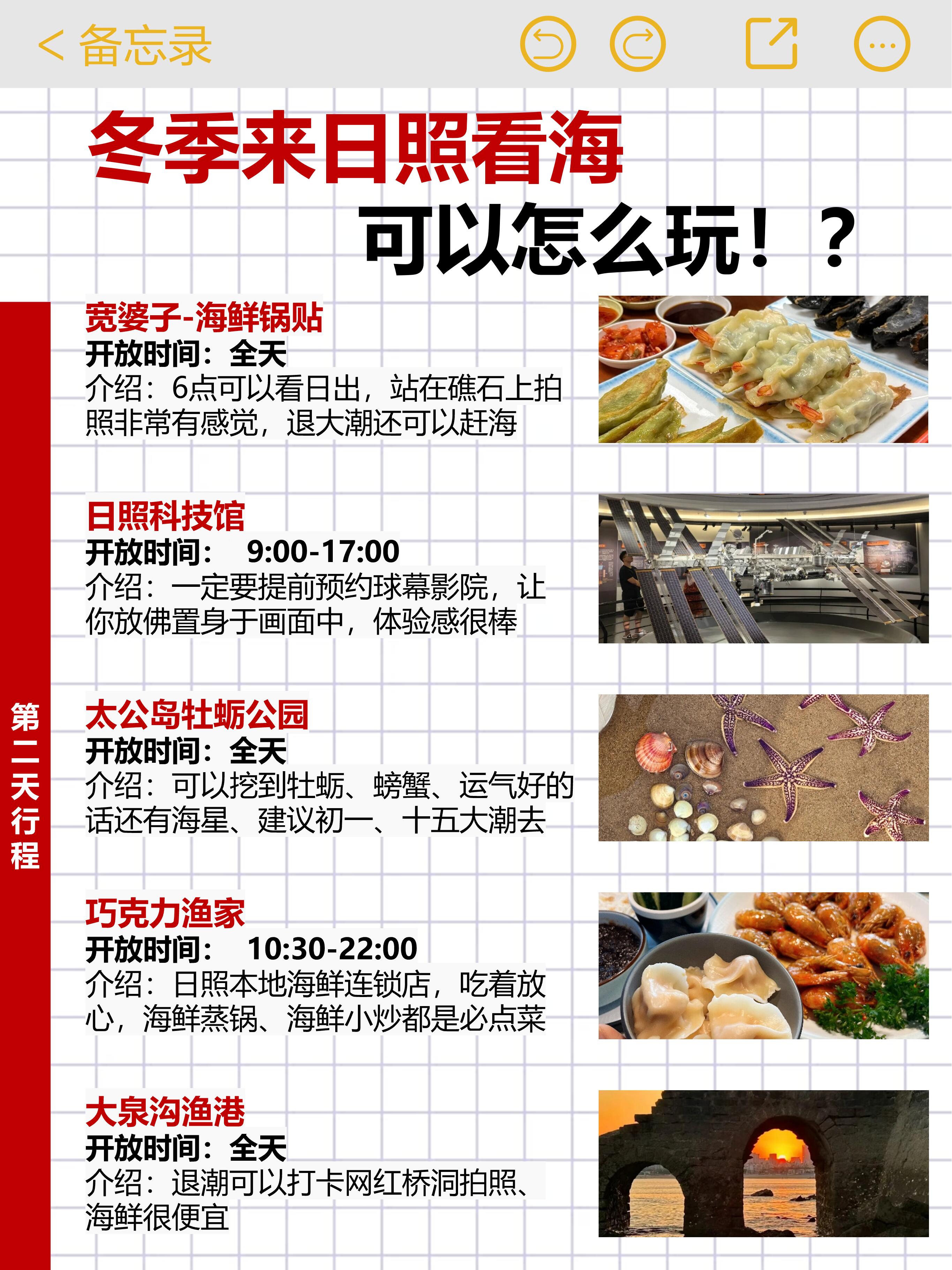 想要最近去日照的,可以直接复制这份攻略!可以省下很多筹备时间~行程安排、住宿、美食、景点写的很详细啦~