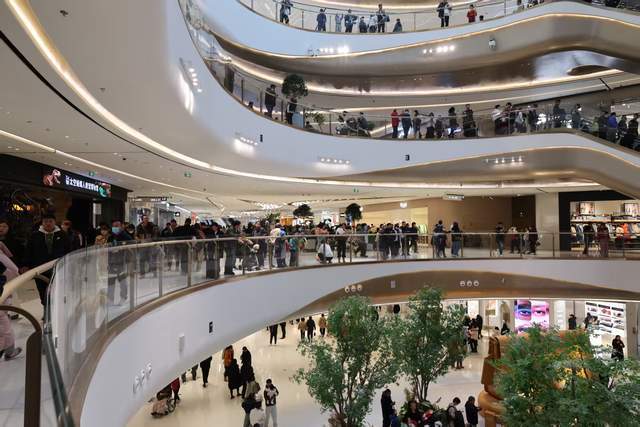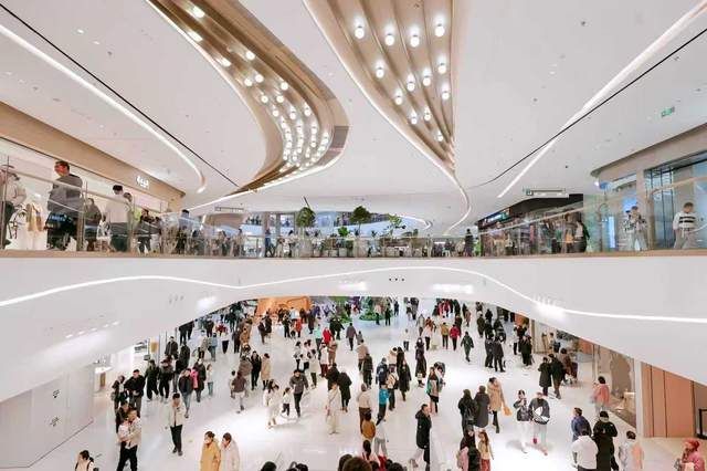 连接各功能区的通道、中庭及公共休憩区同样保持高客流状态,随处可见顾客流动、拍照打卡或携购物袋短暂休整,整体商业空间呈现持续流动的活跃场景,反映出强烈的消费活力与场所吸引力。此外,湾里·王府井WellTown创新性地打造了WCCA湾里当代艺术中心,突破艺术与商业的传统界限,通过高品质展览及多元文化活动,为商业空间注入深厚的艺术内涵与文化价值。