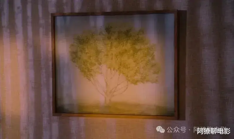 片中那幅关键画里有一棵无花果树,枝条中间闪耀着火焰般的阳光。树顶上,一个小女孩正在向远处眺望,她的脸蛋红红的,染红它的是风,是欢乐,是魔力。