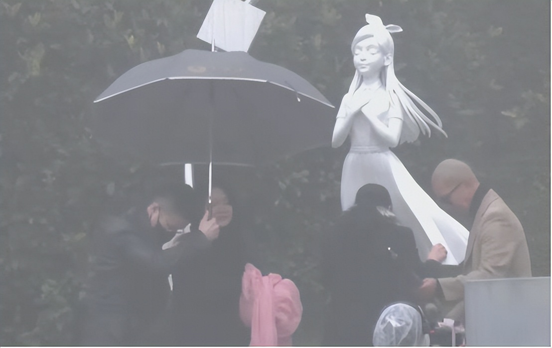 在这个特殊的日子里,没有人愿意多说一句话,大家只是静静地站着,看着那座被粉布覆盖的雕塑,或许心里都在默默地和那个爱笑爱闹的熙媛说话吧。