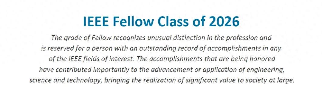 近日,美国电子电气工程师学会(Institute of Electrical and Electronic Engineers,IEEE)发布了2026年度新晋IEEE Fellow 名单。