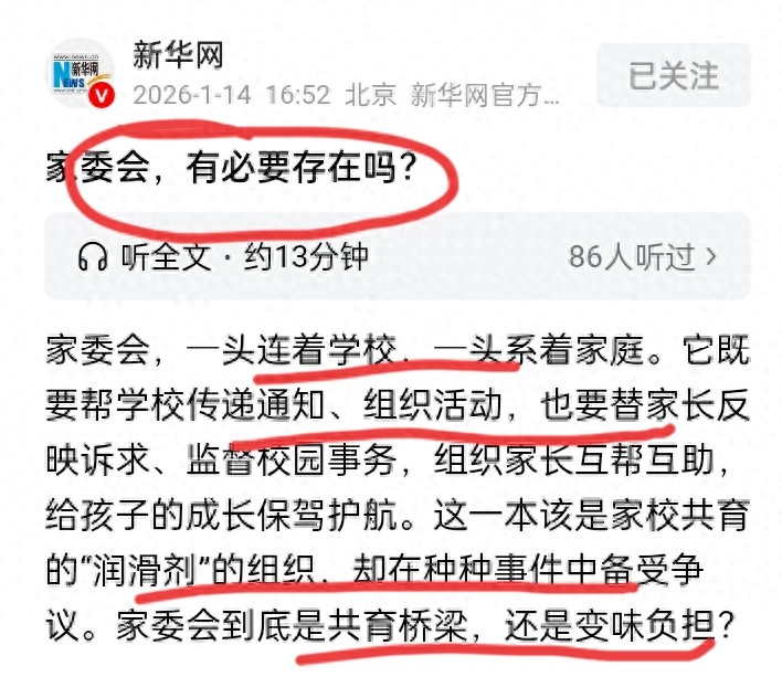 1月15号,央媒针对家委会的事情发声“家委会,到底有没有必要存在”?引发学生家长和大家的强烈关注和讨论!