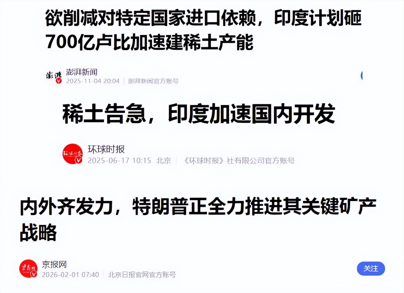 不仅如此,2026年1月,印度矿山部又追加近20亿美元,专门用来开发稀土等关键矿产。