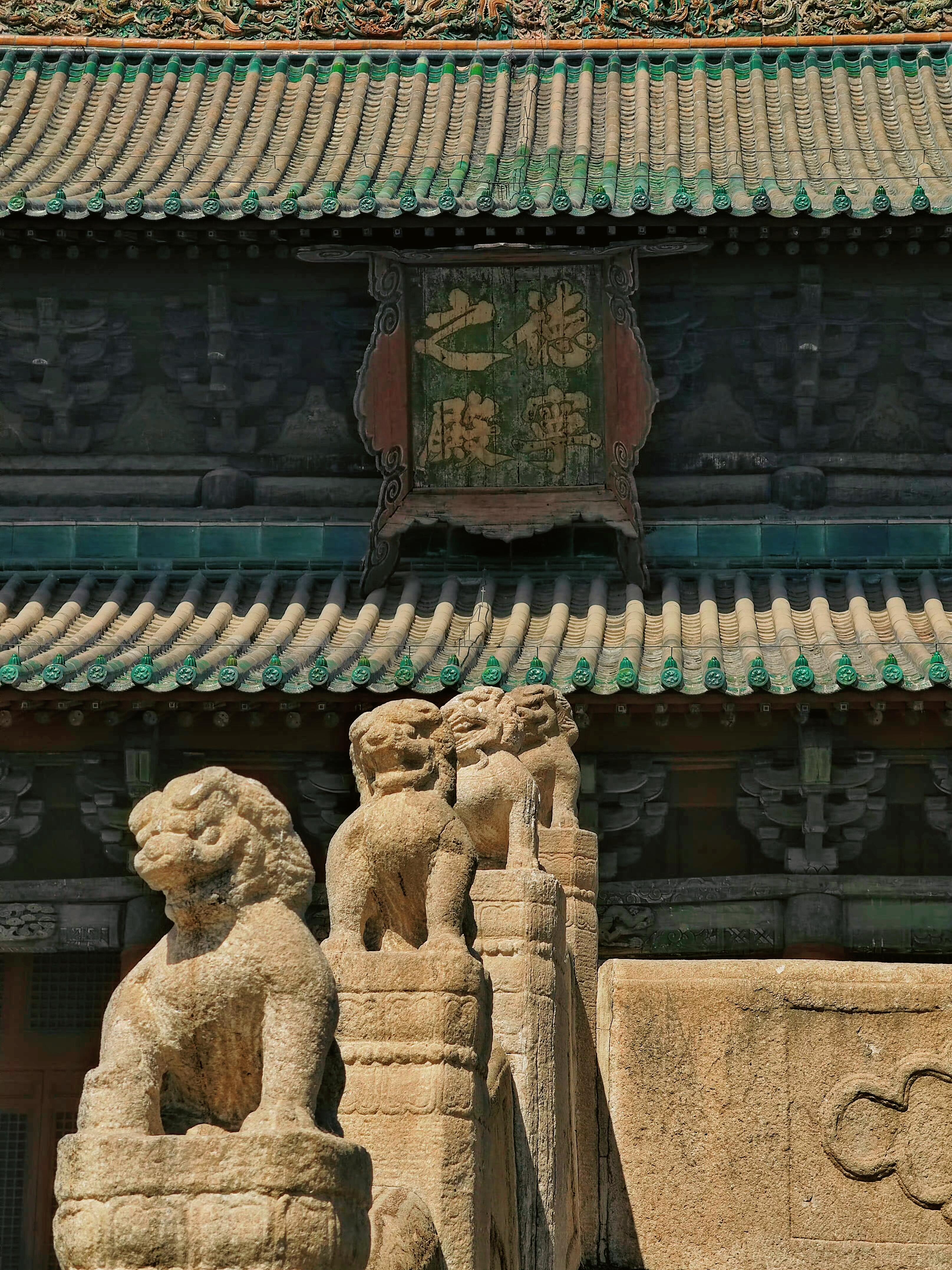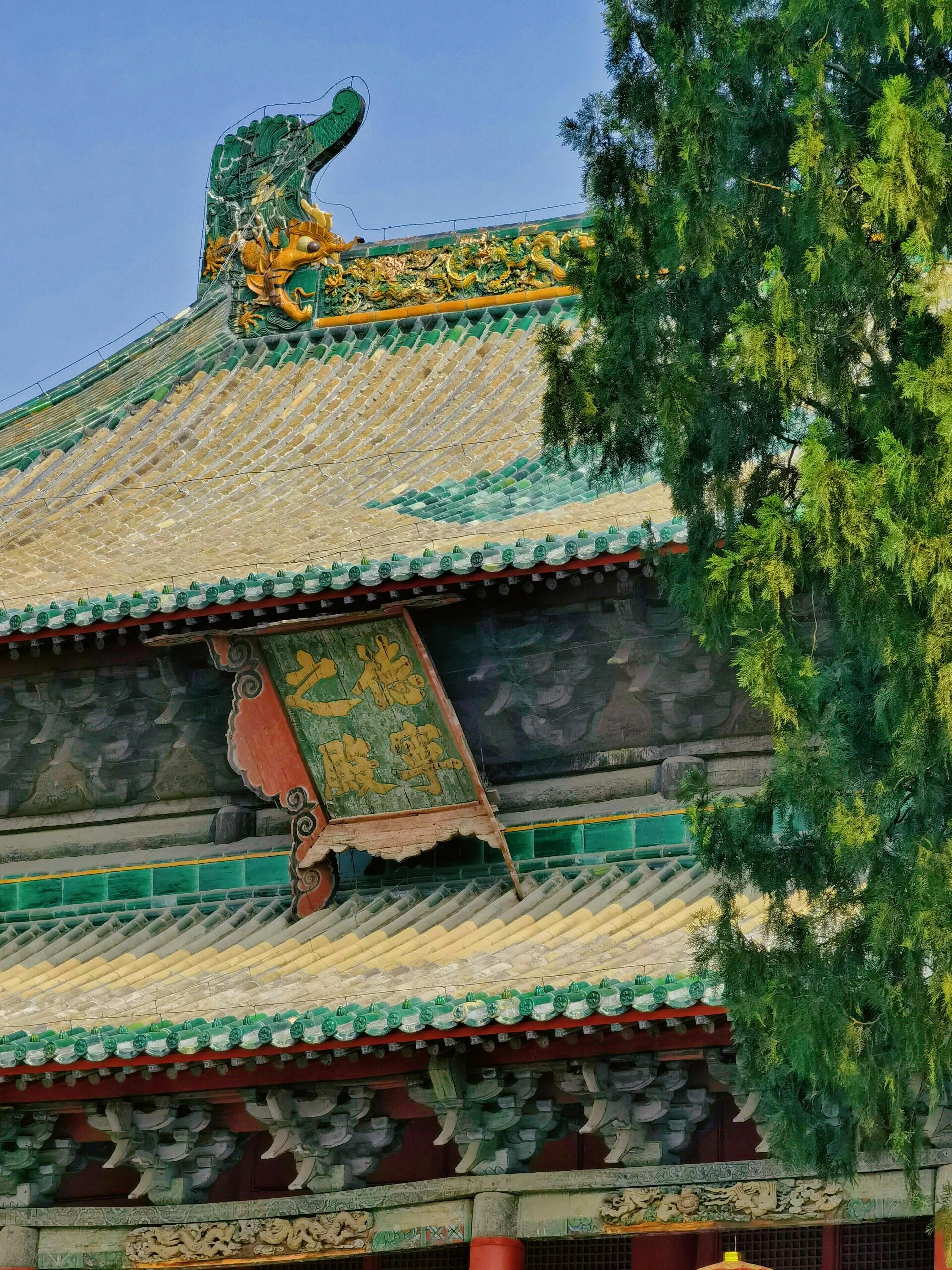 进了山门,最先撞见的是德宁之殿的顶。重檐庑殿顶的琉璃脊兽在日头下晃眼,正中间的宝葫芦被雷劈过,裂了道缝,用铜皮箍着,阳光照上去,铜皮的锈色顺着裂缝往下淌,像道血痕。殿高得仰头才能看全,九间的面阔把院子撑得满满当当,廊下的柱子粗得要两人合抱,柱础上的花纹被雨水泡得发涨,有些地方还长了青苔,滑溜溜的。