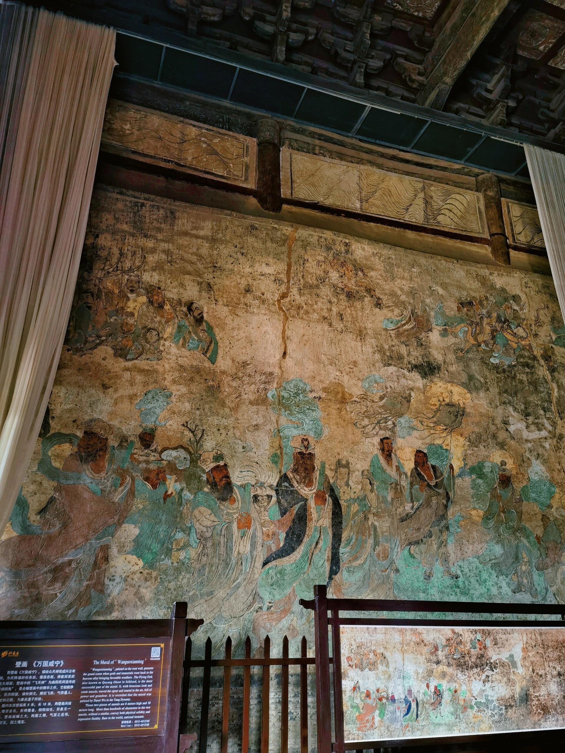德宁之殿的壁画得凑近些看。东墙的巨龙爪子快摸到墙根,鳞片用金粉描过,现在掉得斑斑驳驳,露出底下的赭石色,倒像龙身上结了痂。龙眼睛是用黑琉璃镶的,被香火熏得蒙了层灰,可仔细看,还能瞧见里面的反光。老张说这龙身子有六米多长,最粗的地方得两个小孩才能合抱,去年有个画家来临摹,搭着梯子画了三个月,说龙肚子里藏着个小菩萨,得眯起眼才能看见。