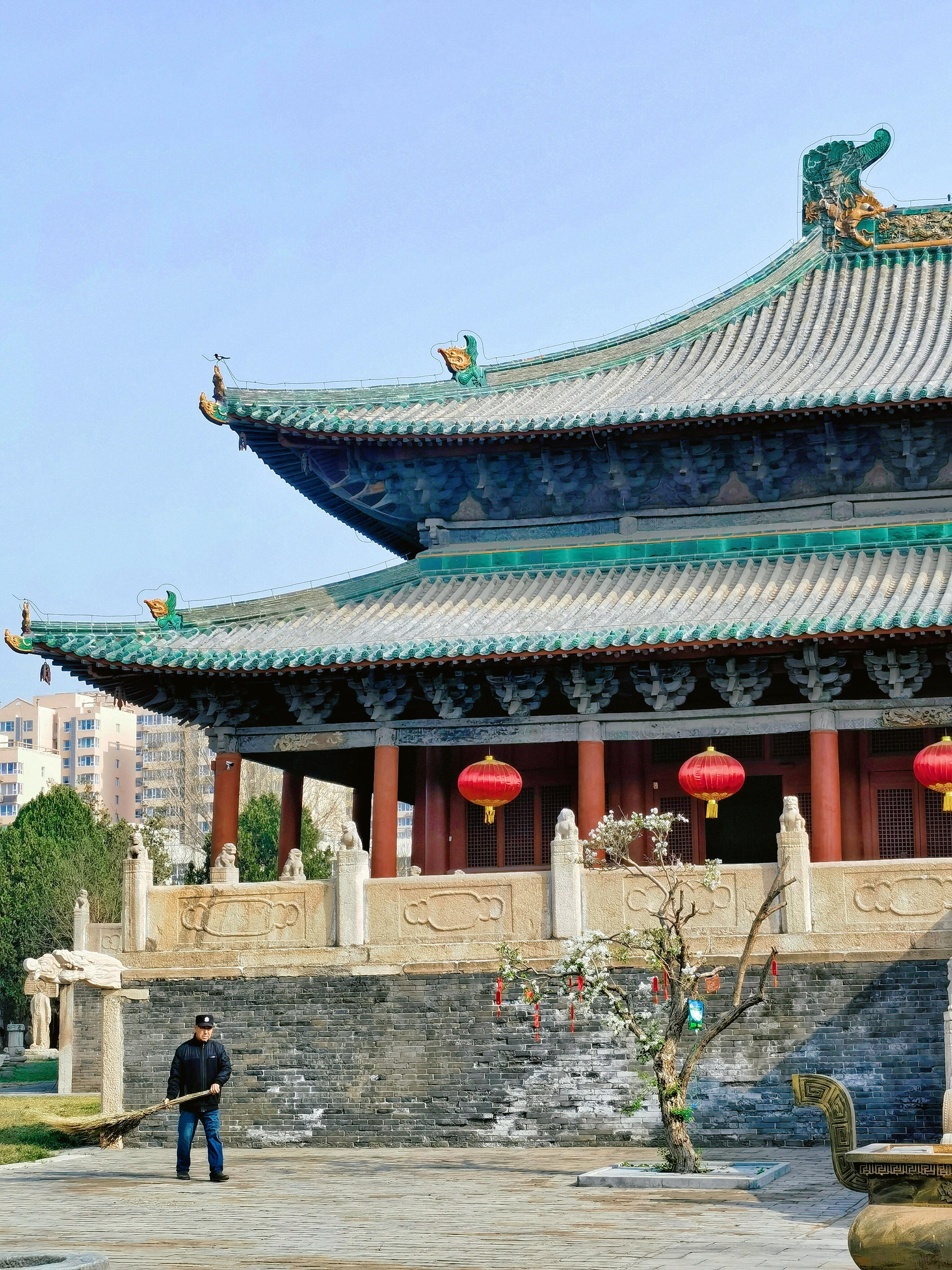傍晚关门前,老张会绕着德宁之殿走一圈,听听木头有没有响。他说这殿有灵性,要下雨时,梁上的木头会"咯吱"响,比天气预报还准。有回他听见响,赶紧把碑林里的拓片收起来,果然半个钟头后就下了瓢泼大雨。
