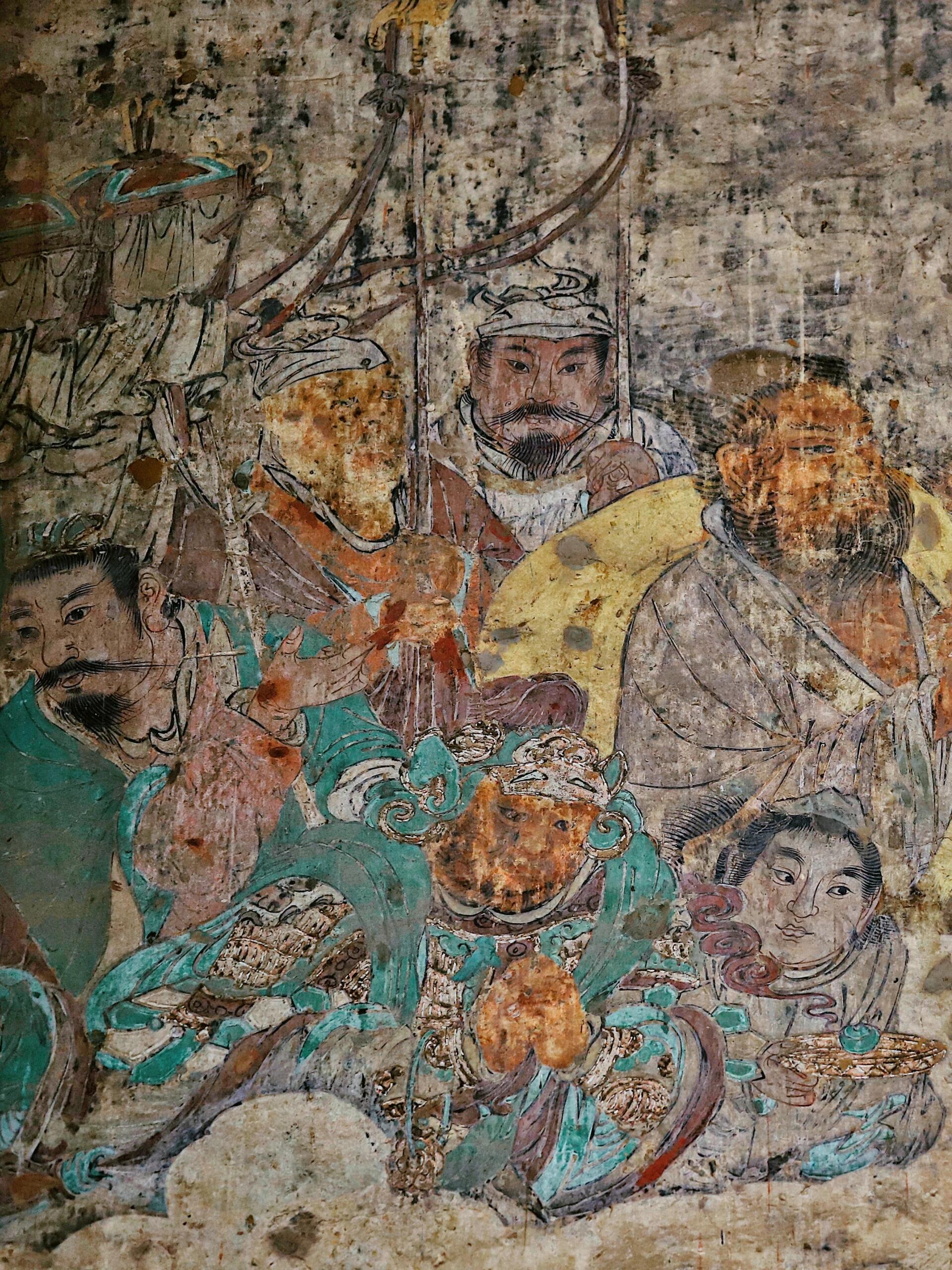 西墙的飞天神肌肉鼓得像石头,肚子上的青筋用墨线勾得老深,能塞进指甲盖。他的脚踩着朵云彩,云彩的边缘脱了皮,露出底下的白垩,像掉了层皮。飞天神的嘴唇裂了道缝,是前年下冻雨冻的,现在缝里长了棵小草,老张想拔,又怕扯坏壁画,就让它那么长着,倒像神嘴里叼着根草。