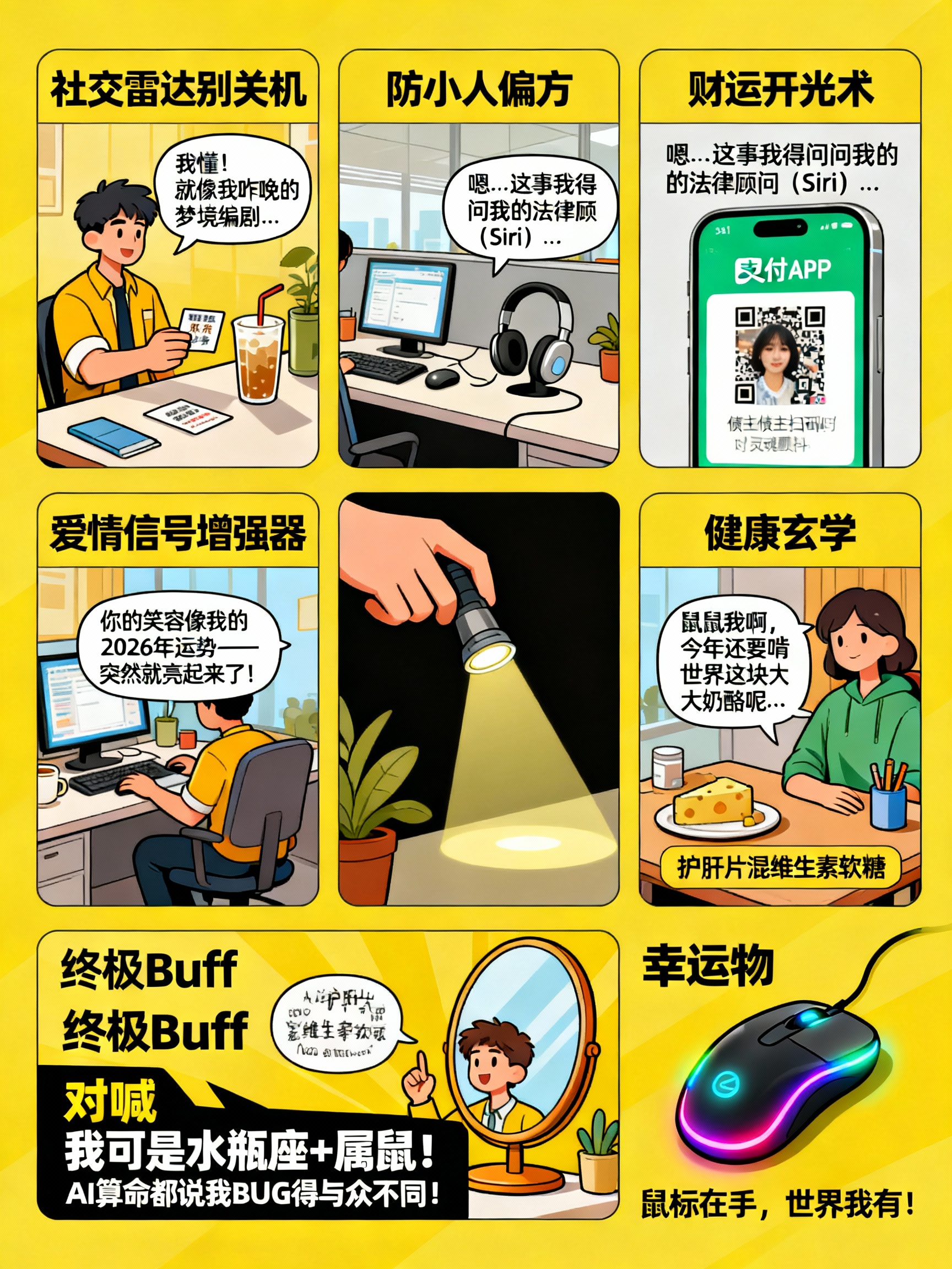✨终极Buff:每天对镜子喊:“我可是水瓶座+属鼠!AI算命都说我BUG得与众不同!”(迷信但有用版)