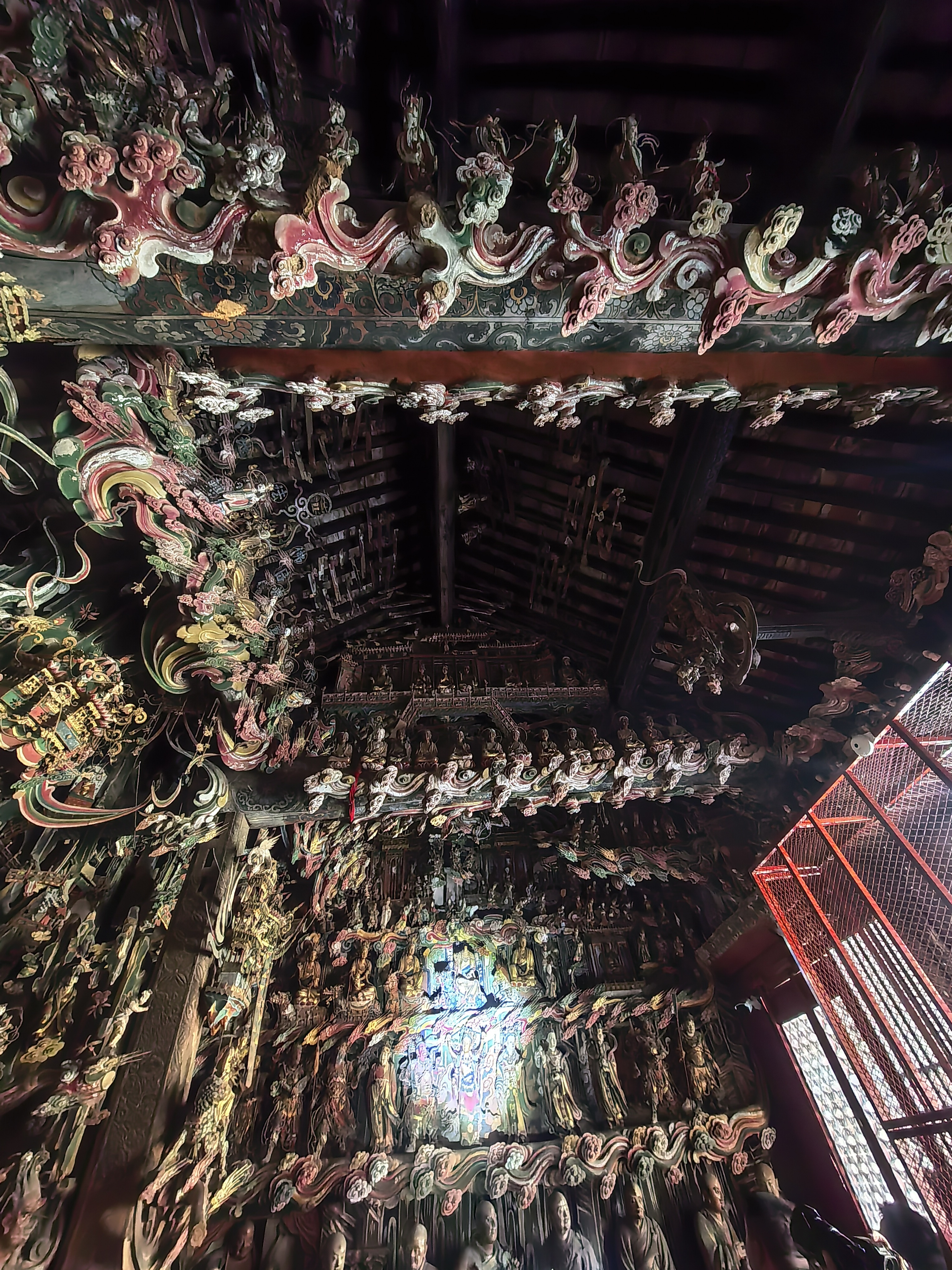 力学奇迹:用“铁骨泥塑”技法(竹篾扎骨架+黏土塑形),使数吨重的塑像悬浮半空六百年不坠。