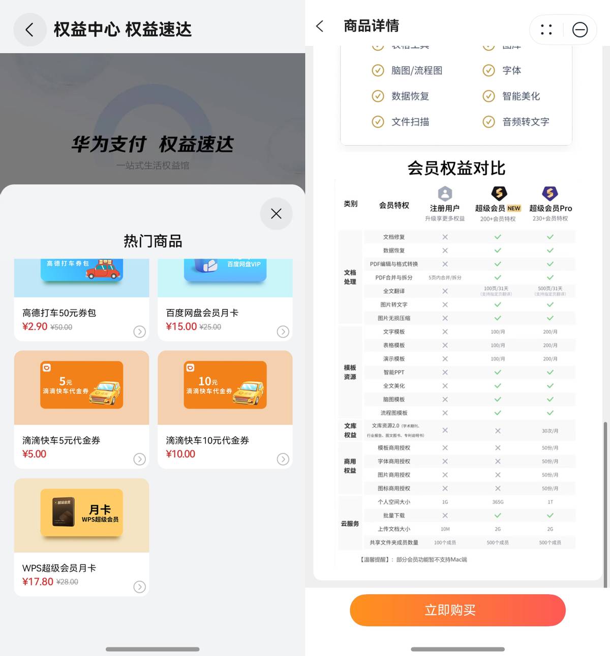 不过最近我倒是发现:华为支付有双十一的优惠活动!只要在桌面右滑进入负一屏,搜索“华为支付”就能直达活动页面。比如17.8元开通WPS超级会员月卡的活动,简直就是为我们这些天天跟文档打交道的上班族量身定做的。平时这会员月卡都得二十多块,现在直接省出一顿早餐钱。