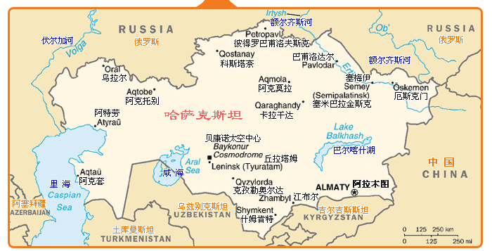 哈萨克斯坦(总面积:2,724,900 平方公里)