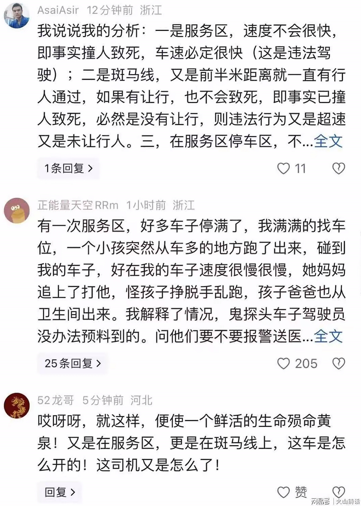 现在大家也在掰扯责任,我说说我的看法。肇事司机在人车这么密的地方突然加速,不管是误操作还是车辆问题,肯定要负主要责任,要是主责以上,还可能触犯交通肇事罪。服务区管理方也跑不掉,监控失效、照明不够、没做好人车分流,没尽到安全保障义务,大概率要承担补充赔偿责任。至于孩子家长,牵着孩子走斑马线,已经尽到全部注意义务了,网友们都觉得家长没一点错,不该被指责。