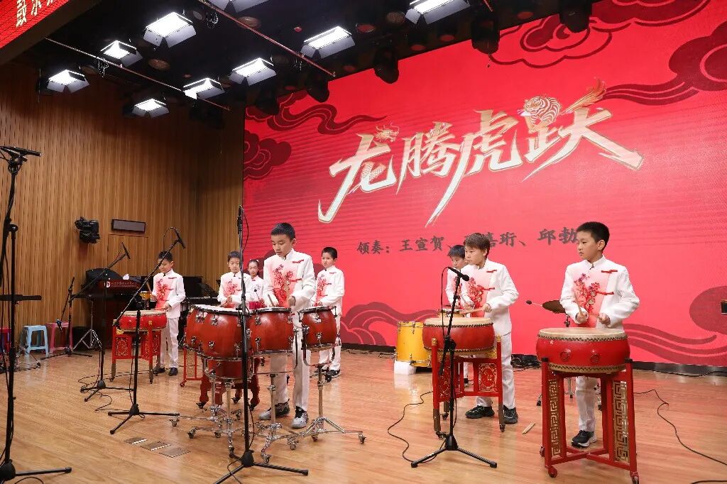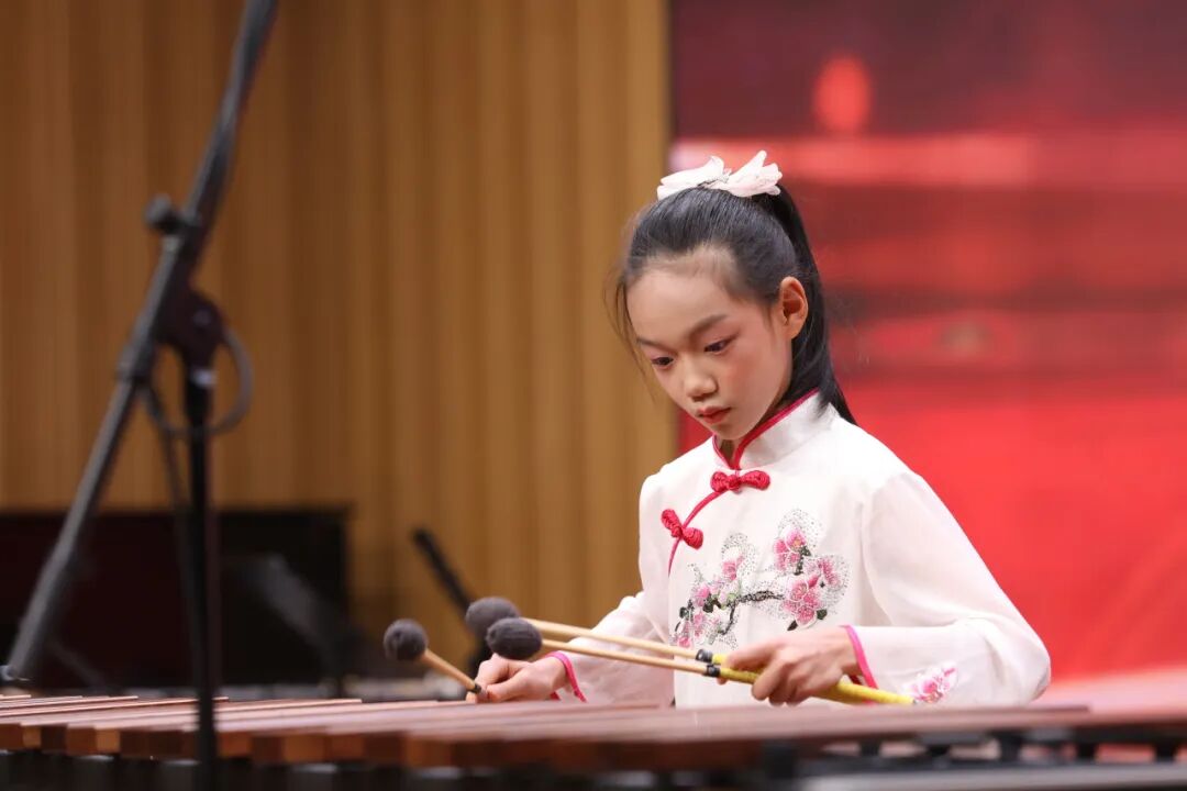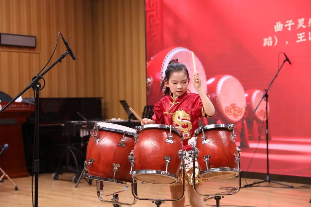 本次演出以“以鼓为桥”为初衷,旨在搭建小学与专业院校的交流平台。演出中,不同学段的音乐学子默契配合,用鼓槌敲击出灵动节奏——马林巴的清脆婉转、排鼓的热烈奔放、民族大鼓的厚重铿锵,在舞台上交织成动人的乐章。