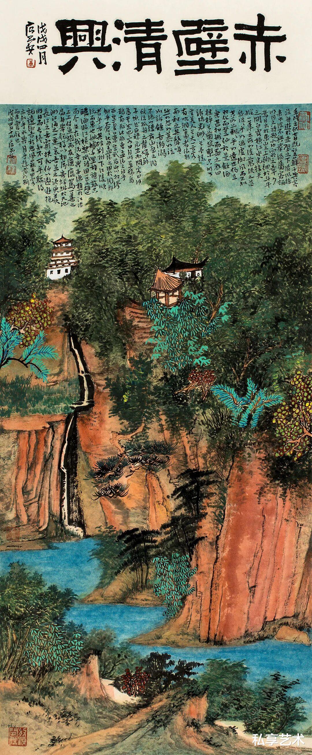 蜀地山水,天赐灵秀。峨眉之巍峨、青城之幽邃、三峡之险峻、岷江之浩荡,皆蕴天地之玄机,养文人之心性。书安自幼浸淫其间,得山川之形,更悟山水之神。观其画作,如《云游江山》《秋山红树》,笔墨间既有蜀山之雄浑,又含江南之温润,烟云流动处,尽显“外师造化,中得心源”之妙。其山水非止摹写形貌,更在以笔墨传神——或如解衣般礴,挥洒豪情;或如静观自得,凝思造化,恰似其人:豪爽仗义中藏文雅,洒脱不羁里见精微。