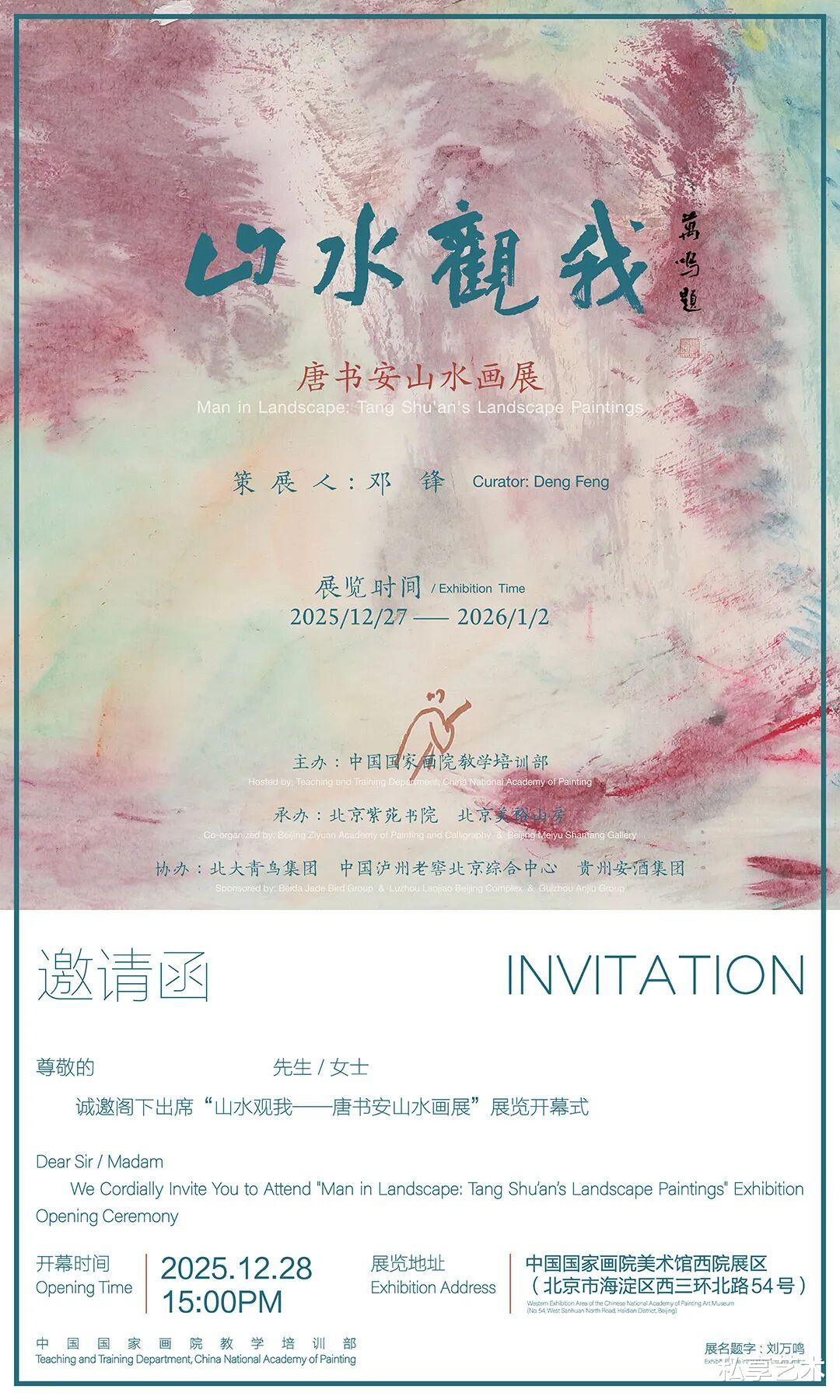 今择中国国家画院美术馆为展场,非惟显其艺术高度,亦为承续巴蜀文脉、弘扬笔墨精神。展览以“山水观我”为题,既是书安对自然的敬畏与对话,亦是对自我艺术生命的观照与省思。愿观者能于尺幅间,见其胸中丘壑,感其笔底风雷,更悟得“艺以载道,文以化人”之真谛。