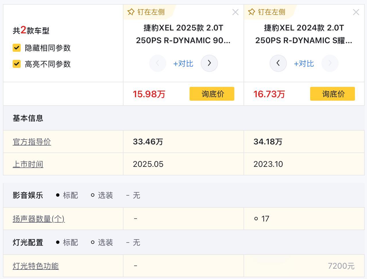 朋友们,20来万的预算想买一辆豪华品牌轿车,奔驰A、宝马2系车太小,奔驰C宝马3系又超预算,那么你不妨出门右转看看捷豹路虎店内的捷豹XEL,这款车咱们就不聊值得值得买了,因为它就快要停产了,现在的库存降价优惠非常大,在懂车帝上能看到裸车价在16万多左右,所以这个价格之前只能买到迈腾帕萨特,现在就已经能买到豪华品牌捷豹了,还要啥自行车,而且这车本来也很强,2.0T发动机加上8AT变速器,全铝车身加大量铝合金材料的悬架系统,所以这车确实是挺香的。