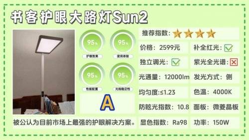 大路灯护眼灯推荐一:书客护眼大路灯SUN2;公认为目前市场上最强的护眼解决方案,全球权威机构多项认证。